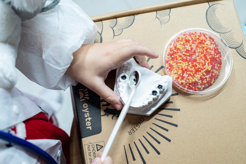 - Treat cavities with real dentist’s tools and a jaw model with a lot of cavities to fill