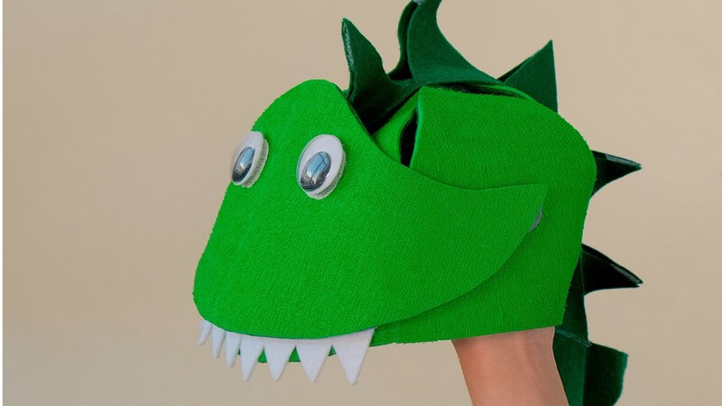 - Dinosaur costume parts (muzzle, teeth, eyes, comb, templates for a hat, base, spikes)